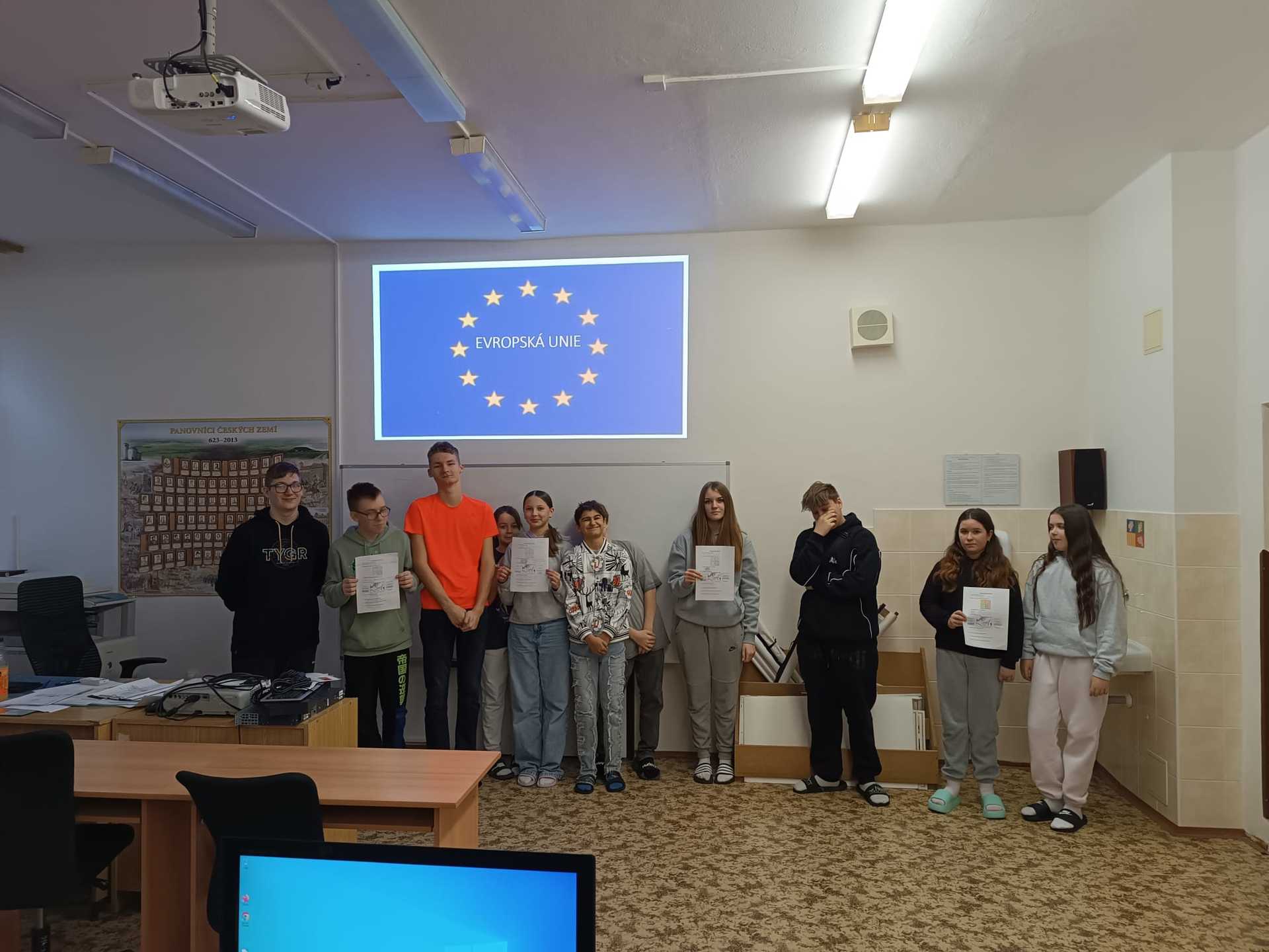 Na jednom ze stanovišť se žáci dozvěděli základní informace o historii vzniku Evropské unie, jejích symbolech, právech a povinnostech členských zemích. Kromě toho, že žáci měli za úkol určit, které státy Evropy jsou členy, vyhledali také jejich hlavní města a příslušnou vlajku. Pro jednotlivé státy jsou typické významné osobnosti (kulturní i sportovní), národní pokrmy a výrobky. Některé z nich žáci jednoznačně přiřadili, s jinými měli značné obtíže. Překvapením pro žáky se stalo zjištění, že v EU musí být každý text přeložen do všech jazyků členských zemí, tzn. do 24. Žáci si otestovali (ne)znalost našich nejbližších slovanských jazyků. Některá slova i ze slovenštiny byla pro ně tvrdým oříškem. Zajímavým tématem se staly také měny jednotlivých států před přijetím eura – jeho výhody a nevýhody, měnové kurzy. Žáci si zjišťovali informace o Eurozóně jejím fungování. Oživením celého projektu se stal zpěv hymny EU a poslech písní.