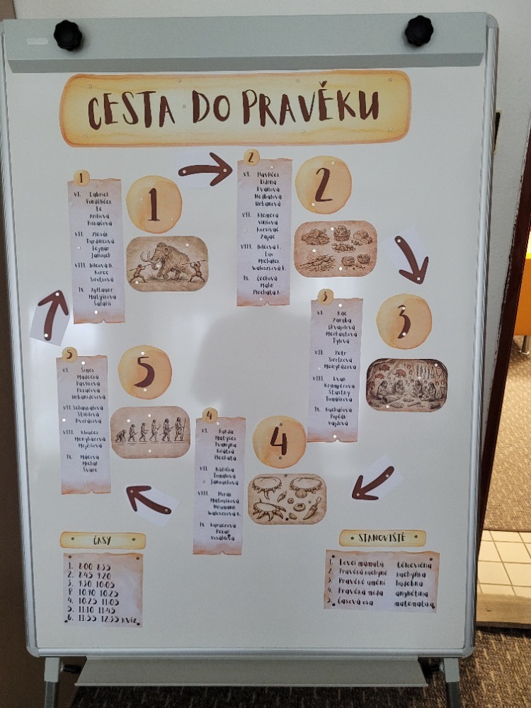 Ve středu 1. 4. 2026 se uskutečnil projektový den 2. stupně s názvem "Cesta do pravěku", který žákům přiblížil život našich dávných předků. Během dne si žáci prošli celkem 5 stanovišť, na kterých si nejen rozšířili své vědomosti, ale také si mohli mnoho činností sami vyzkoušet. Projektový den završil vědomostní kvíz Kahoot, ve kterém žáci ověřili své znalosti.