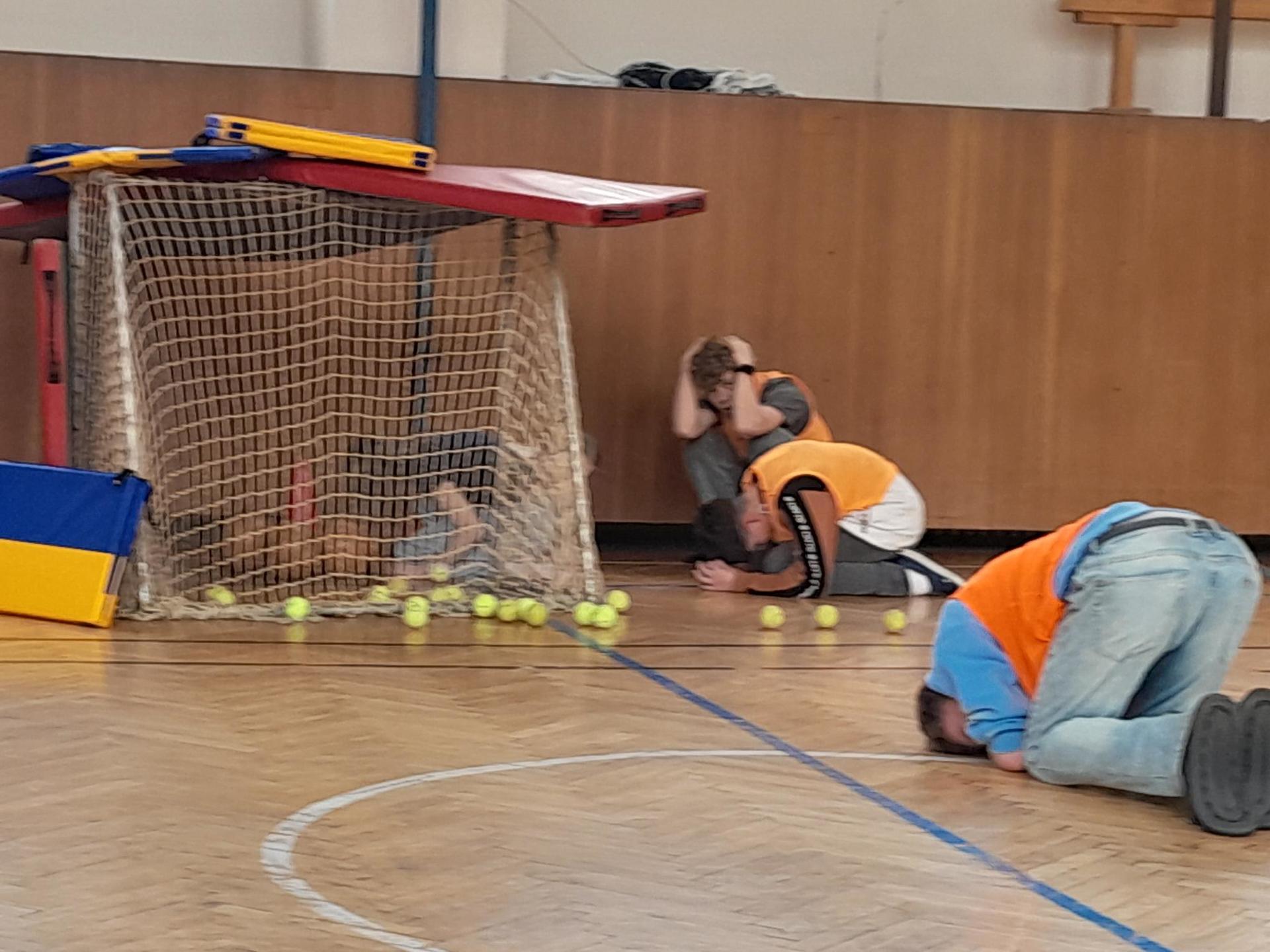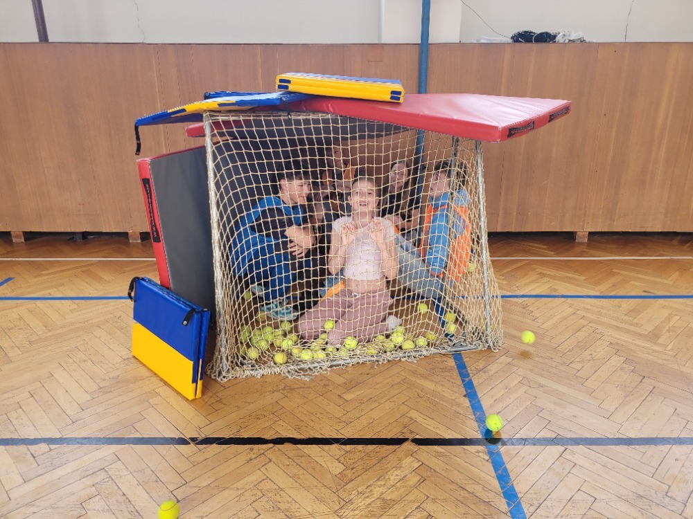1. Stanoviště “LOVCI MAMUTŮ  Tělocvična se stala prostorem pro poznávání života lovců a sběračů. Děti si povídaly o tom, jak pravěcí lidé žili, lovili mamuty nebo sbírali plody. Součástí byly i pohybové aktivity, při kterých si žáci mohli některé činnosti sami vyzkoušet, a to včetně stavby vlastního pravěkého obydlí.