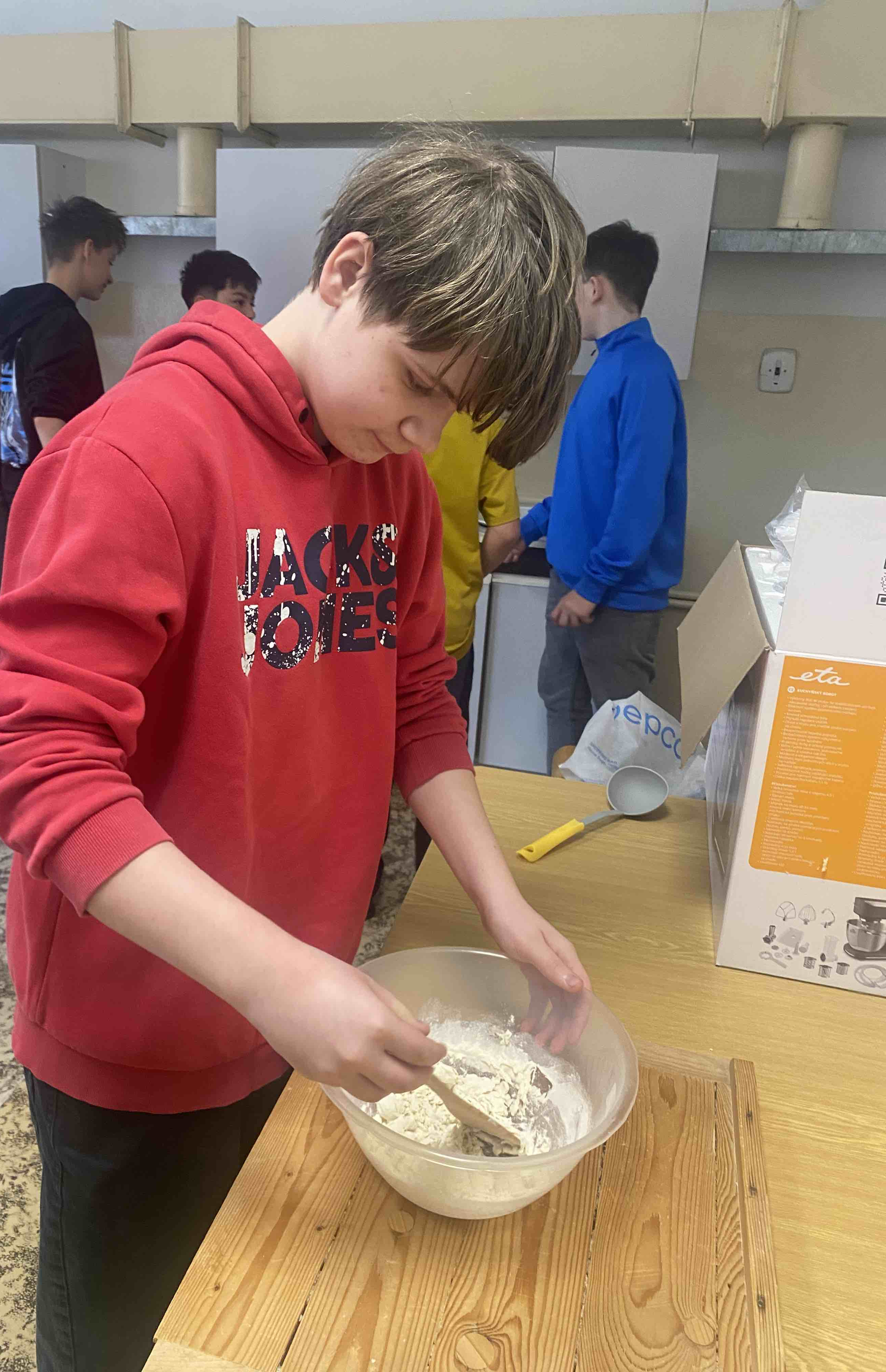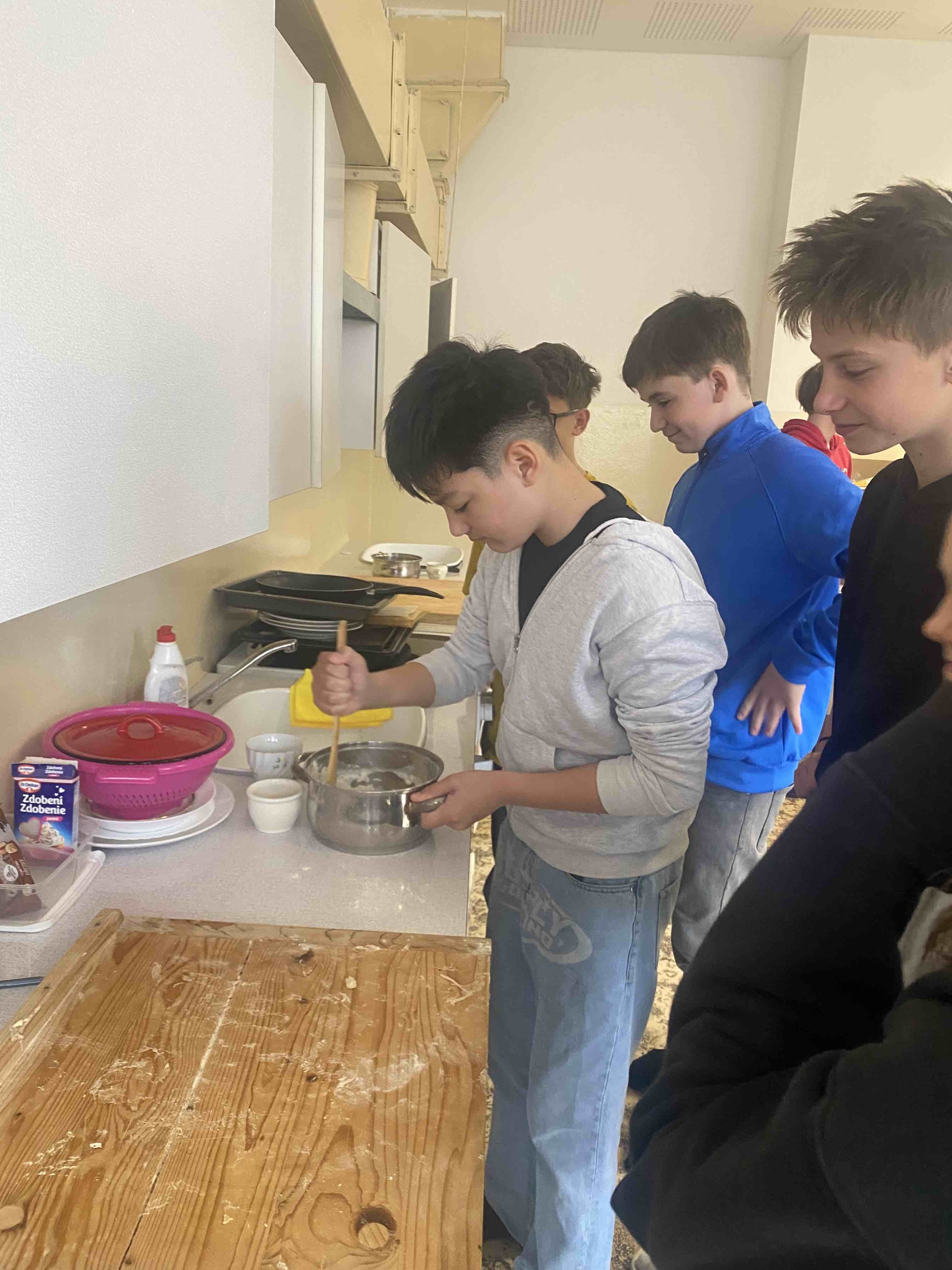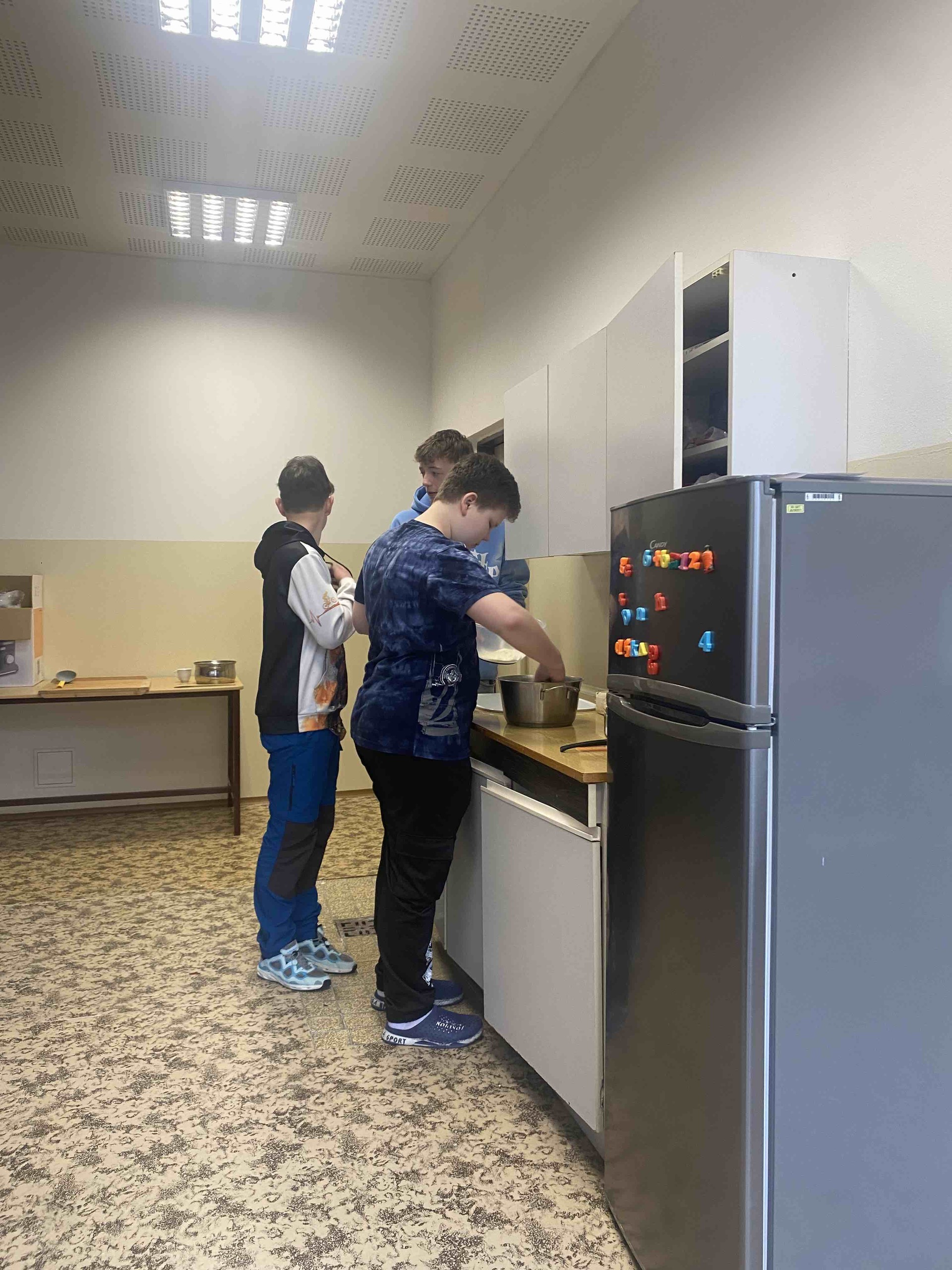 1. Stanoviště “PRAVĚKÁ KUCHYNĚ – V kuchyňce se žáci proměnili v pravěké kuchaře. Připravovali jednoduché pravěké placky a dozvěděli se, z jakých surovin se dříve vařilo a jakým způsobem lidé získávali potravu.
